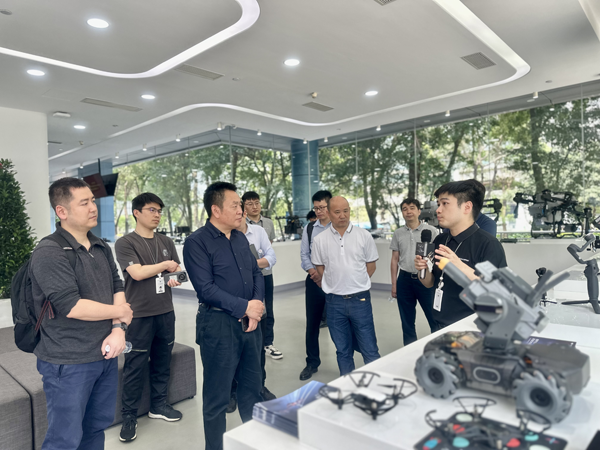 (合影:右七為湖南省自然資源廳地理信息處一級調研員楊水冰在大疆總部調研)