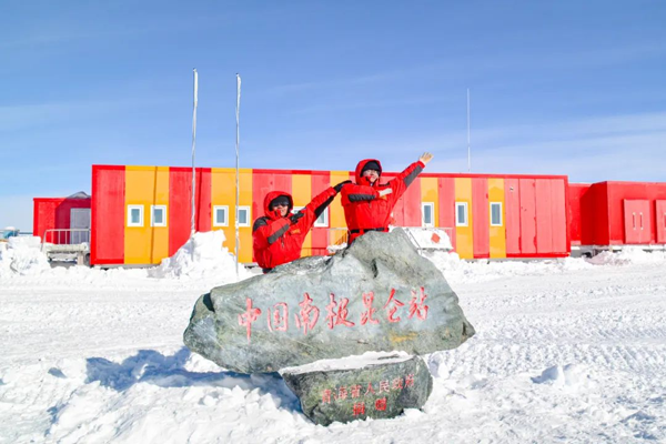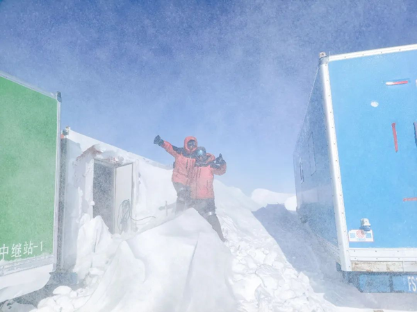 ①科考隊員在昆侖站合影②同濟大學顧元元與曹哲毅