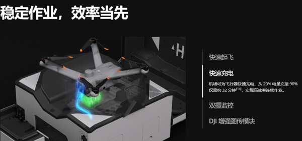 在無風環(huán)境下,DJI Matrice 3D 系列無人機懸停于 20 米海拔高度至剩余 0% 電量時測得此數據。在不同的外部環(huán)境、使用方式、固件版本下,結果或有不同程度的差異,請以實際體驗為準。